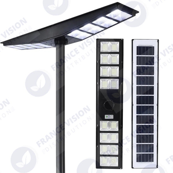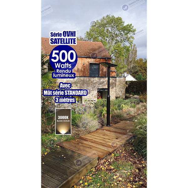 Lampadaire solaire pour extérieur - Série OVNI SATELLITE - 500 Watts - Angle 240° - IP65 - 117 x 24 x 12 cm - Diamètre tube d’insertion 76/60mm - 3 Modes - Télécommande - Détecteur de mouvement - Capteur crépusculaire - 6000k